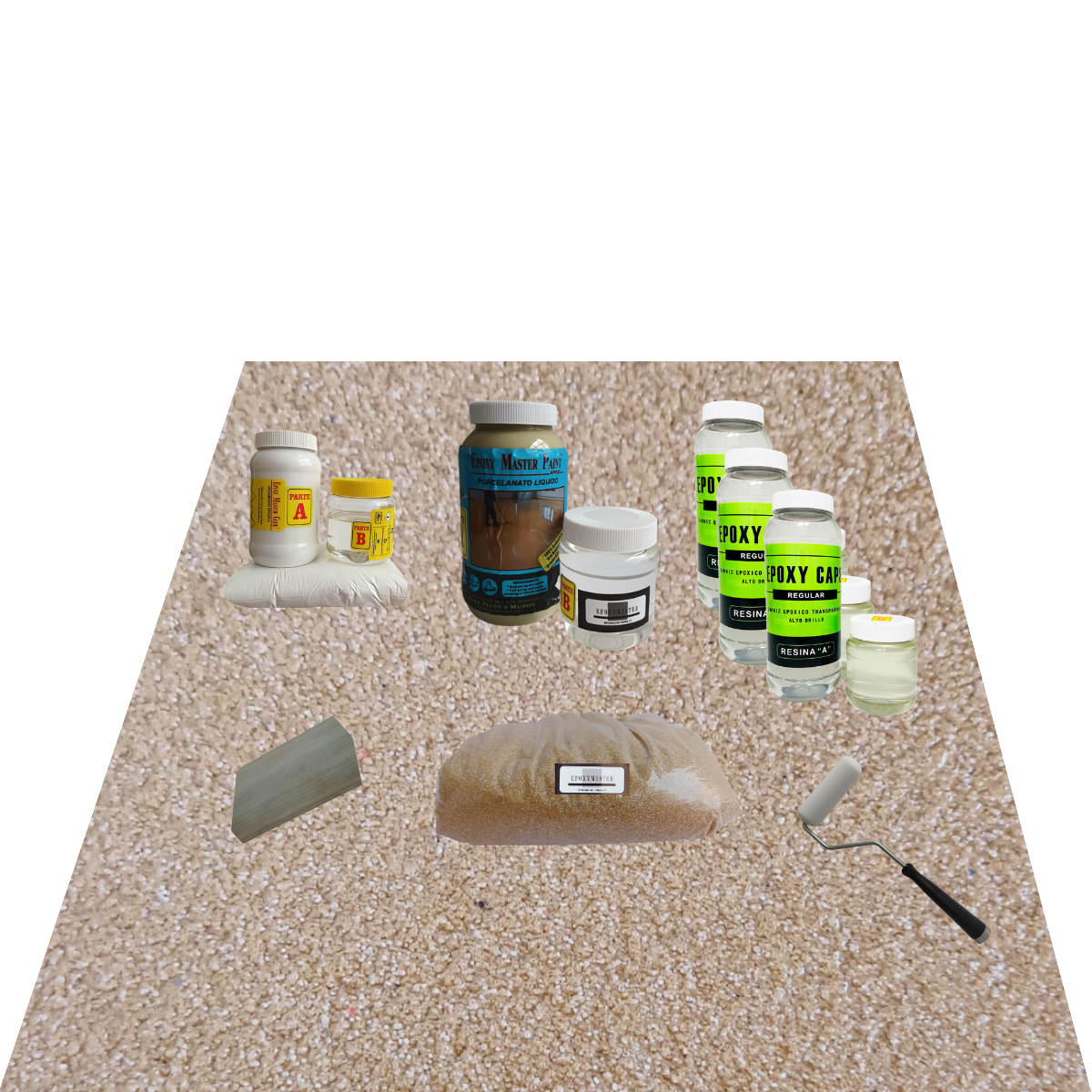 Kit para crear una textura decorativa en sistemas de pisos resinosos sin juntas. Ideal para comedores, cocinas industriales, escaleras, pisos industriales y residenciales, estacionamientos, albercas, andadores, y más, con un acabado antiderrapante.