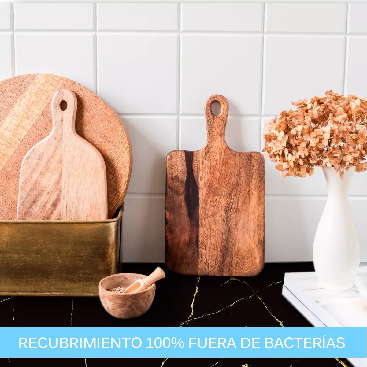Se obtiene un recubrimiento muy estético con propiedades de grado alimenticio, impermeable, fácil de limpiar y muy resistente.